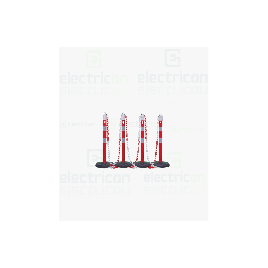 Descriere: Stâlp cu lanț din plastic, roșu-alb reflectorizant, ideal pentru bariere mobile. Setul include 4 stâlpi, 3 lanțuri de câte 3 m și bază hexagonală din plastic rezistent. Design compact, cu protecție anti-alunecare și înălțime de 1,000 mm. Perfect pentru utilizări temporare.