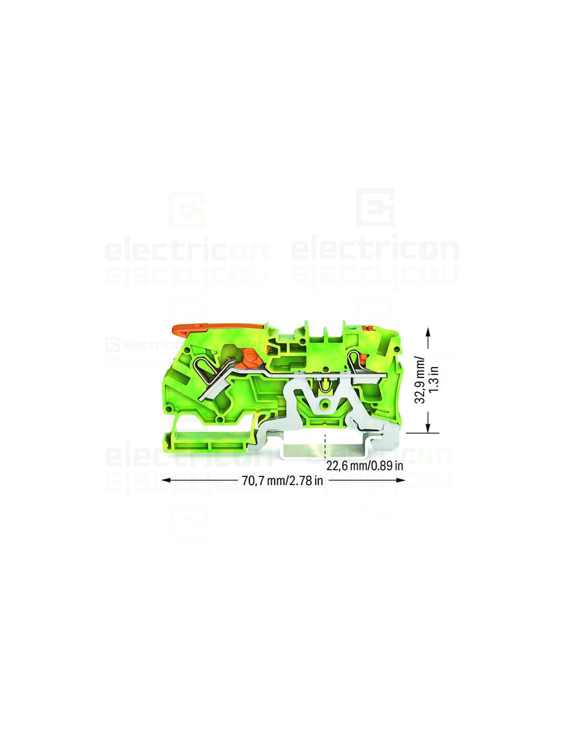 Clema șir, cu pârghie și buton,împământare, 2 conexiuni, 4 mm², galben-verde, TopJobs Clamp, Wago, 2104-5207