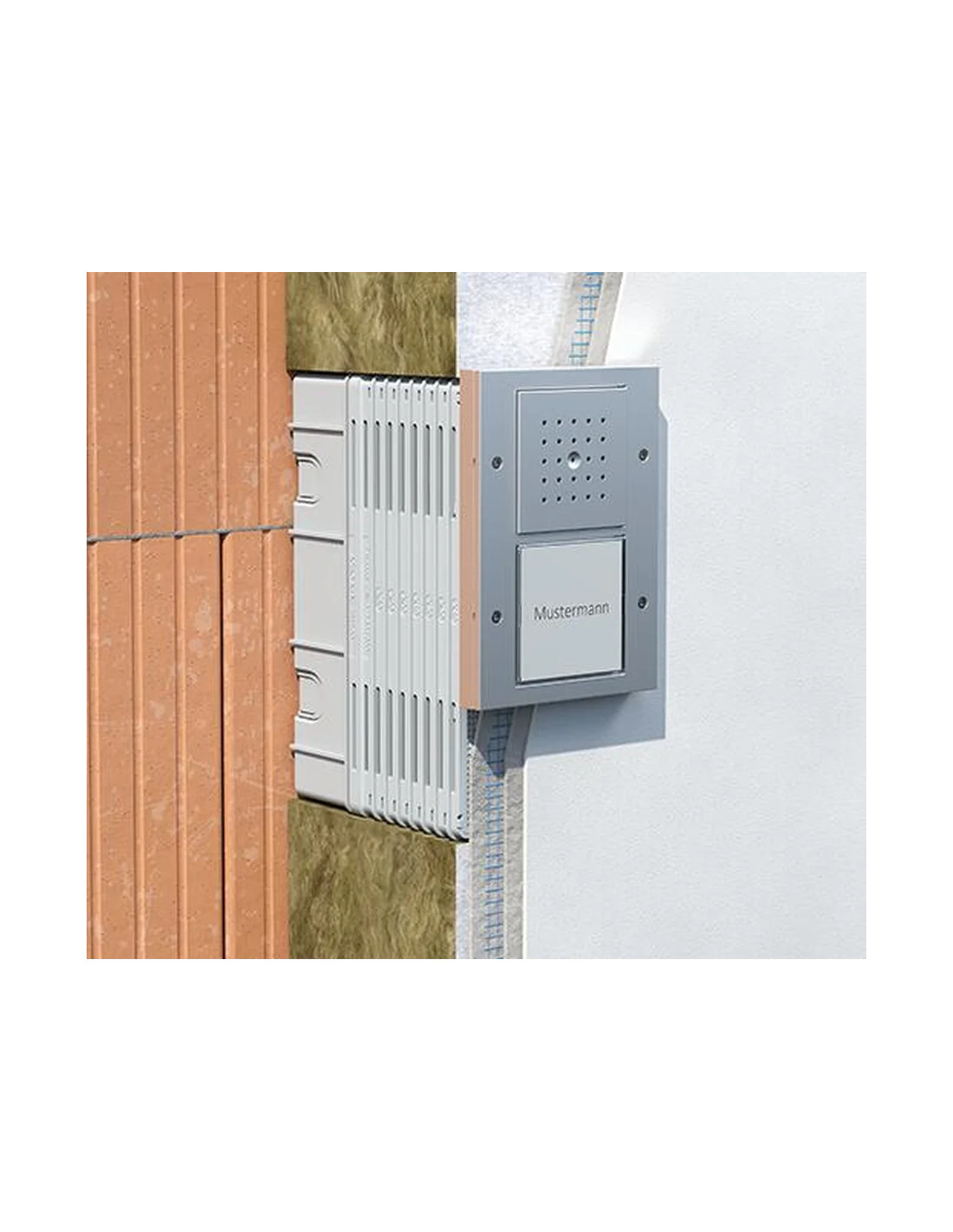 Marcați locația pe perete. | Înșurubați baza carcasei pe perete | Dacă este necesar, reglați elementul de prelungire pentru a se potrivi cu grosimea izolației. | Atașați elementul de extensie și fixați-l în poziție. |