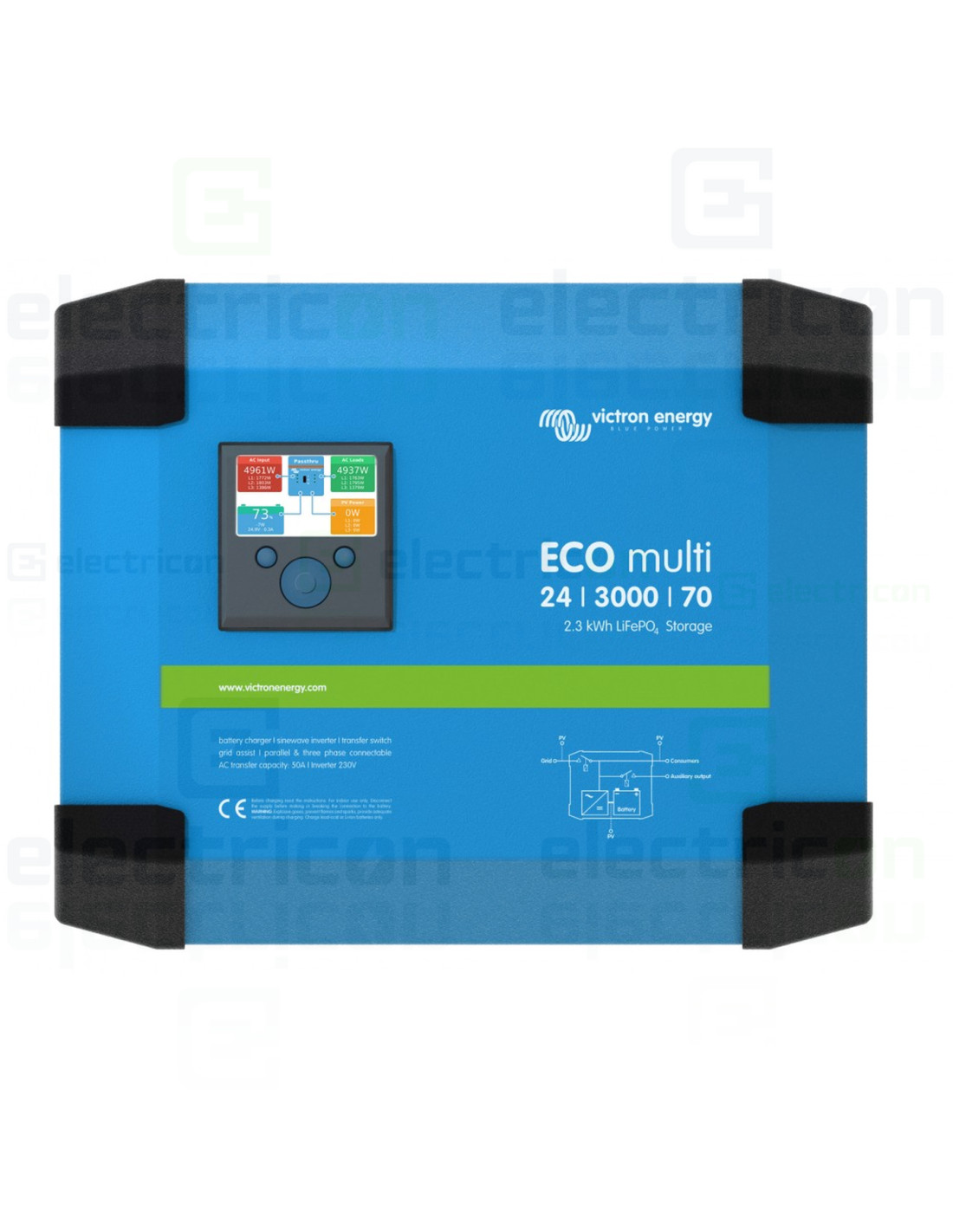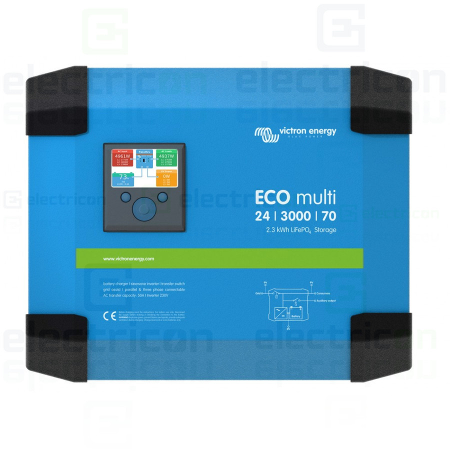 Invertor hibrid, monofazat, 24V, 3000VA, 2500W cu baterie LiFePo 2,3 kW, ECOMulti, Victron Energy, EMP243020300