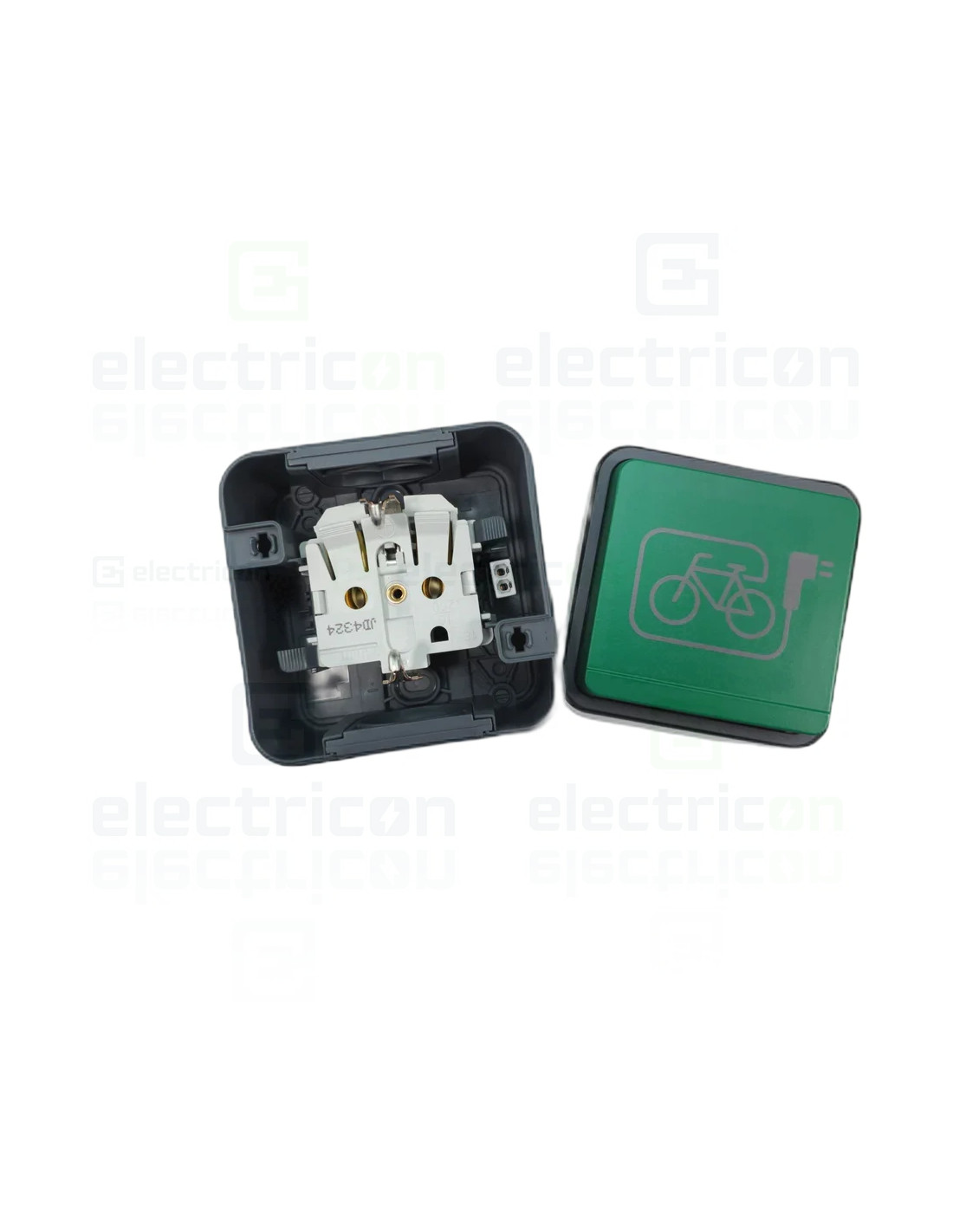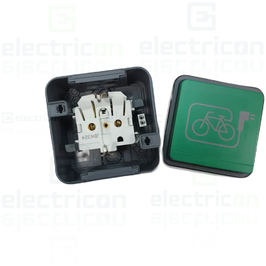 Priza 2P+E Berker, cu capac verde, simbol E-bike, aplicata, gri, IP55, W1 Hager 47403533