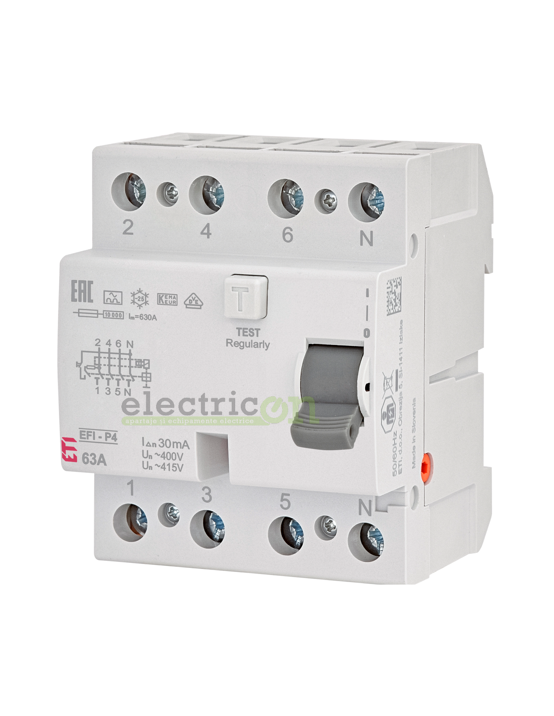 Intrerupator diferential RCCB trifazat 4P, 63A,tip A recomandat ca intrerupator principal in tablou