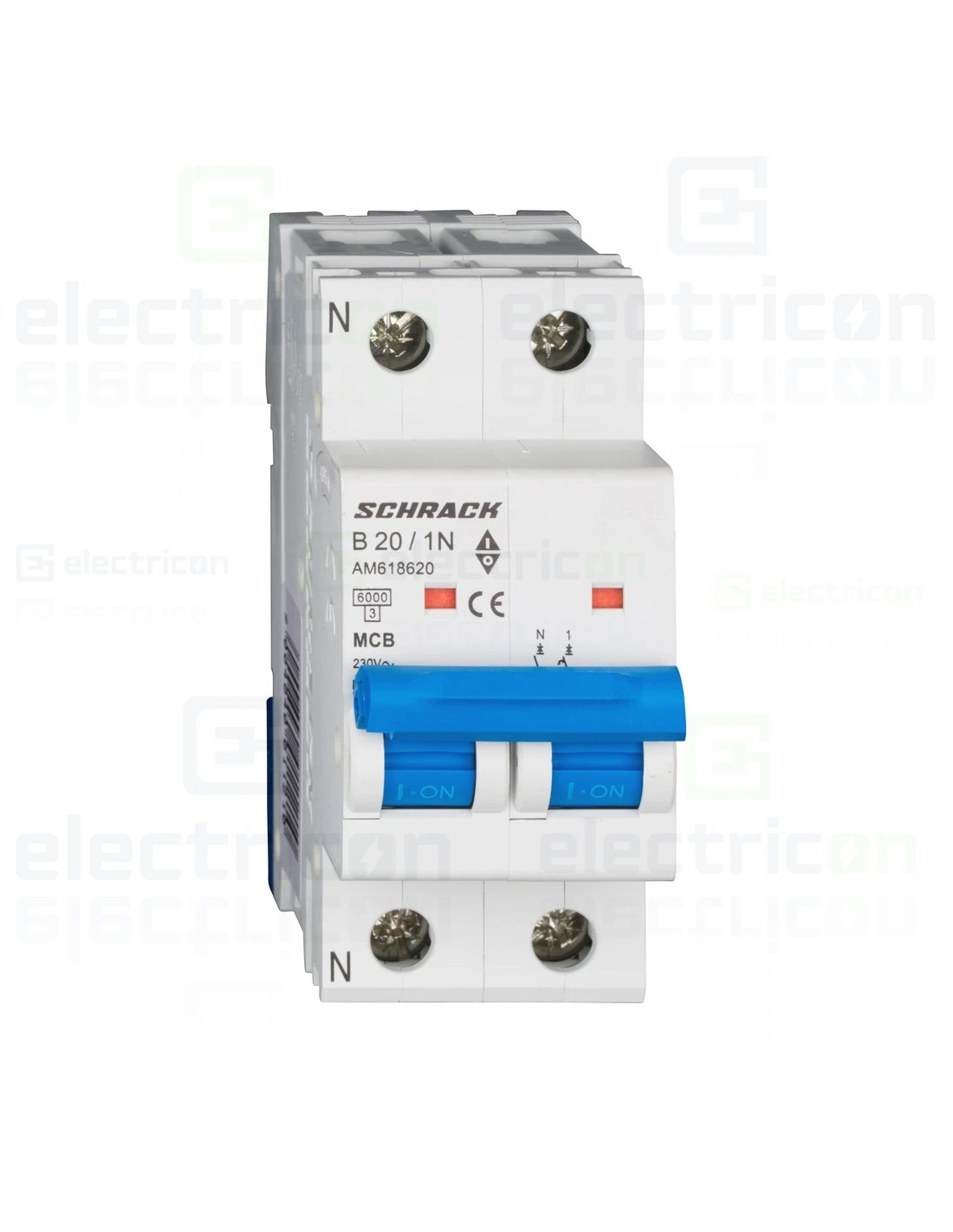 Siguranta automata (disjunctor) , MCB, 1P+N , curba B,20A, 6kA, curba B, Amparo, Schrack, AM618620